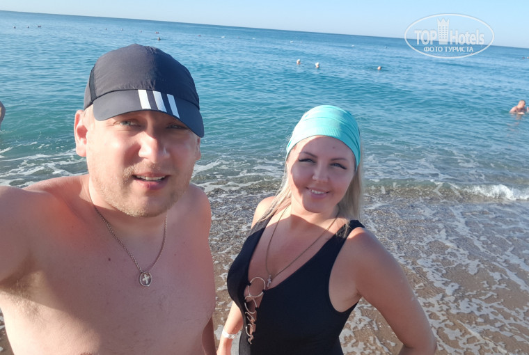 Отдыхали с мужем в сентябре 2018 года. По приезду в отель испугались, что нам не достанется номера, т.к. в этот день заехало 90 гостей. Было видно, что персонал на ресепшене не справляется с приемом гостей и заселением. Некоторые гости ругались и кричали, что их никак не могут заселить. Но все обошлось. Примерно к трем часам вернулись с моря и нам отдали ключи от номера. Номер был в дальнем корпусе на первом этаже с видом на сцену. Все мероприятия можно было наблюдать сидя на балконе))) В номере был сломан кондиционер (капала вода на пол) и шторка душевой. Шторку отремонтировали сразу. А вот кондиционер наверное попытки с третьей. Но этот момент не испортил отдыха))) Еды очень много и все очень вкусно. Обедали в основном на пляже. Там ооочень вкусная пицца. Вход в море галька. Я купалась в мыльницах, т.к. ноги не "терпят" гальку. После ужина обычно шли в бар, который располагался возле нашего корпуса. Отдельное спасибо бармену Зафиру (вроде). Каждый вечер он готовил нам отличные коктейли)))