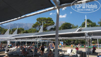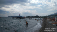 Пляж небольшой по протяженности, скорее даже маленький, но лежаков хватает, ну естественно куча людей занимает их, бросая полотенца и уходит...Есть пирс с двумя вроде спусками, был еще прямо с пляжа сход дощатый с поручнями, но после одного небольшого шторма, его вытащили.