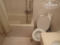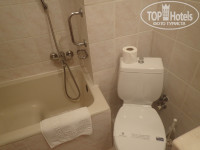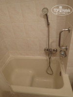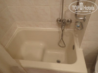 Ванная комната небольшая. Маленькая раковина, крошечная сидячая ванночка с душем. Мы вообще такую ванну видели впервые. Унитаз втиснут в уголок между раковиной и ванночкой, обратите на него внимание на фото. Присаживаться будете, аккуратно вписываясь в узкое пространство. Все чисто, все работало, хотя, конечно, видно, что все старенькое.