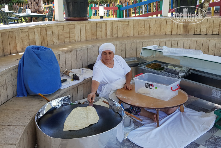 Всё как всегда в Турции. Очень много еды, много жарят на огромных грилях и в столовой и на улице. Рыба , индейка, говядина, курица, овощи , фрукты. Всегда был виноград, вкусный арбуз, мороженное почти всегда.