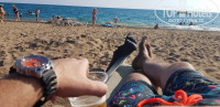 Море суперское, очень теплое, вход нормальный, без всяких тапочек и тд. Галька есть, но мелкая, почти как песок. Глубина наступает быстро. На мелководье у дна плавают рыбки-кусалочки :) и кусают за ноги, если стоять неподвижно, так что надо постоянно находится в движении. Не больно, но неприятно. Ребенка, который болтался у поверхности в жилете не укусили ниразу.