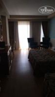 Отдыхали семьёй (ребёнок 5 лет) в сентябре 2019 года. Погода отличная (40 градусов), море теплейшее, песчаный пляж, в воде галька. Только это и спасло наш отдых. Заселили только на следующий день, объявив, что нет мест. Отвезли в соседний отель. Правда за это неудобство, которое произошло из-за дирекции отеля, продали больше путёвок, чем номеров, предоставили номер с боковым видом на море, бутылку вина и немного фруктов, 2 дня в релакс зоне на пляже (отдельная беседка, которая стоит на день 10 евро), посещение одного платного ресторанчика (Рыбный стоит 7 евро на человека), понравился, очень вкусная дорада, ресторанчик на берегу море, записывайтесь сразу, работает не каждый день. Море хорошее. Если не умеете плавать, то заход в море не очень для Вас будет комфортен, т.к. делаешь два шага в море и уже по шею. Вода в море прозрачная. До пляжа от отеля идти метро 300, очень приятно пройтись по дорожке по аллее. На пляже так же можно перекусить в обед, распить напитки. Все удобства есть на пляже. Все вечерние мероприятия проходят на пляже. На территории отеля есть два бассейна. Мороженное ограниченно по времени, свежевыжитые соки 2 евро. Лежаки можно найти, но с трудом в любое время. Еда так себе мягко говоря, если бы не гриль и мангал, то с трудом сытно и вкусно поешь. Много выпечки. Креветки и рыбу подали один раз на ужин за 10 дней. Овощи выкладывались плохого качества, иногда были замечены огурцы и помидоры гнилые. Фрукты были не плохие. На завтрак свежевыжитые соки тоже продавались. Кофе не вкусный , как по мне, как растворимый. А вот в баре-лобио на 1 этаже кофе был вкусным, стоял другой аппарат. Спросив на рецепшене: "Что в вашем понимании означает "Ультра всё включено?" Мне ответили: "Можно пить и есть 24 часа". Импорта в это отеле нет. Просто переплачиваем за путёвку, как сказала гид. Иностранцы же платят за "Всё включено", а не как россияне за "Ультра". По поводу посещения зоопарка, с ребёнком ездили в него. Ей понравилось, интересный и не большой. Есть фигуры динозавров. Сотрудникам лишь бы заработать денег. Хватали детей и давай их фоткать с животными, как то не приятно, отношение отвратительное. Было 20 минут представление котиков морских, интересно. Еще поехали на экскурсию "Зелёный каньон". Словами не рассказать, нужно видеть. Восхитительное и красивейшее место. После наше отдыха в этом отеле можно сделать вывод, этот отель на 5 никак не тянет. Питание и сервис всё портит. Сотрудники этого отеля работают не на качество, а на количество. В следующий раз, если полетим в Турцию, будем изучать доскональнее, оказывается есть градация пятёрок!! Они все разные, некоторые как этот отель тянет с трудом на 4!! Этот отель советовать никому не хочется. Это Ваш выбор! Удачи и отличного отдыха всем!!!
