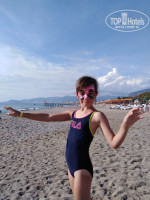 Теперь насчёт питания. Не понимаю людей, которые пишут гневные отзывы о, якобы, однообразном питании... Люди, это не гастрономический тур, это Турецкий All Inclusive!!! Всегда за обедом и ужином была рыба (гриль, запечённая, тушёная и пр), курица или индейка, котлеты (но острые, полуфабрикат), блюда с фаршем, два раза печень на гриле, шаурма в турецкую ночь. Супы разные, есть и со специями (итальянский, суп-гуляш...) , есть и просто крем-суп, который без проблем можно дать и ребёнку (из броколли, кукурузы, лапша...). Как всегда, много свежих овощей, зелени, много заправок. Отдельно диетического стола нет, но в обед всегда были отварные овощи (брюссельская и цветная капуста, броколли, кукуруза, морковка, картошка), заправленные растительным маслом, которые шли в пюре для младшей (блендер брала с собой). Из ресторана выносить еду нельзя, но в первый день подошла к повару с тарелкой овощей и спросила, можно ли унести в номер, чтобы накормить ребёнка. Разрешили без проблем. Отдельно отмечу йогурт за завтраком - отличный натуральный продукт. Дома никак не могу ввести в рацион кефир и йогурт, т.к. обсыпает на любые марки. Турецкий зашёл прекрасно, ребёнок лопала с удовольствием, ни единого прыщика не вылезло. Под конец даже давала клубничный. Кашу не пробовали, т. к. брала свою из дома. Для взрослых за завтраком омлет, варёные яйца, яичница, отварные и свежие овощи, ветчина, колбаса, сосиски, панкейки, сухие завтраки, джемы, варенье. Воду набирали в кулере на первом этаже. Сначала младшей брала только кипяченую, потом уже просто из кулера. Резюмирую: деликатесов нет, да их и не ждали. Выбор есть, качество еды отличное!