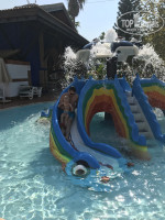 На территории отеля есть магазин, цены нормальные. Детский клуб и детская площадка очень простые. Горки в бассейне хорошие, но работают мало. Территория красивая, всё в зелени, растут гранаты и апельсины, бегают 2 белых кролика. Море рядом, пляж галечный, лежаков всем хватает, есть бар и на обед делают пиццу.