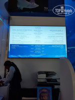 Паспортный контроль прошли довольно быстро, т.к. сотрудники работают очень оперативно, направляя огромный поток туристов на разные стойки. Работает бесплатный wi-fi. Есть обмен валют, но только от 200 долларов. Курс самый невыгодный: 200 долларов = 681,50 дирхам.