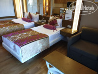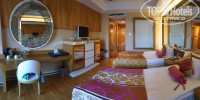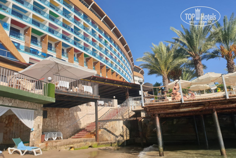 Про Отель: территория не большая, но каждый найдёт занятие, в том числе и детки. Мы отдыхали с детьми, поэтому отзыв будет ориентирован на них. Есть небольшая площадка для детей и это пожелание отели:сделайте ее побольше, так как очень много отдыхающих с детьми. Есть детский клуб, можно оставить ребёнка там заниматься, играть, всегда детей развлекут и присмотрят. В нем русскоговорящие аниматоры Анита и Алена, последняя к слову, разговаривает на многих языках. Всегда все подсказывали, очень веселые и милые. Детей можно оставлять с 4х лет и до 4х лет под присмотром родителей, или же за платно) еда разнообразная , но, временами невкусная(делали редко роллы, кальмары, морепродукты), в остальном же все осень вкусно, но для конца сезона были очереди на ужине и проблематично было найти стол. Конечно, за 14 дней еда приелась и казалась однообразной. Мороженое давали 3 раза в день и бесплатно, анимация не дотягивала до уровня данного отеля. Развлекали, но не заводили. Уборка в номере каждый день, все , что в холодильнике, то все бесплатно. Можно на рецепшен отредактировать график уборки и высказать предпочтение, когда вам удобно убрать номер. Пирс шикарен, вода чистая и можно даже спускаться с детьми. Так же есть небольшой песочный пляж, лежаков всегда хватало, но волнами к берегу прибивало мелкие водоросли. Бассейны глубокие, есть детский, по голень, но утром солнце на него не падало и было прохладно и в нем, кстати была холодная вода, что странно для детского бассейна. В этом бассейне стоит игровой комплекс . Многие прозвали его Адским аппаратом. С данного ведра лилась холодная вода, большим потоком и сдирала купальники, дети боялись кататься с горки из-за этого. В 17.00 бассейны «закрывались» и все готовились к ужину, но никто с лежаком не выгонял. Только после 17.00 дети спокойно катались. Причём все, находящие у бассейнов.