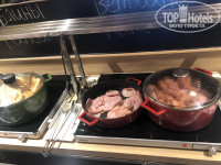 Что касается завтрака, то он огорчил. Продукты закупают в достаточном количестве, но приготовить их не могут хорошо. Что не понравилось: сардельки были не очищены от оболочки, картошка на мой вкус сырая, оладьи не вкусные, как батон жесткий. Киви мелко порезали, но не очистили, есть не удобно. На столах нет салфеток, только нужно брать где посуда.