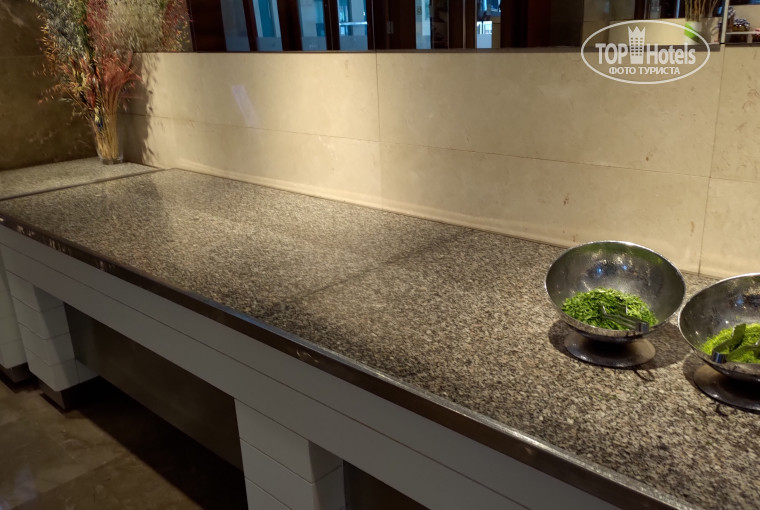 По вторникам – рыбный ужин. Это креветки, печеная красная рыба. Помимо этого, каждый день есть три вида недорогой жареной рыбы (лещ, окунь и т.п.). Из рыбного также консервированные салаты из мелких креветок, мидий и солёная красная рыба. Последние три дня рыбные салаты исчезли. Пишут, что были лобстеры – при нас не было. Вообще, последние три дня питание скатилось ниже, чем в IC Green, хотя он отель более низкого класса. В обед так вообще было много пустых полок.