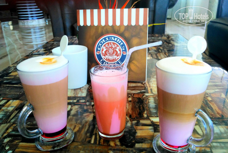 В ресторанах достаточно мест, как на летней площадке так и в помещении. Работает 5 ресторанов по системе все включено,по которым вы можете плавно переходить из одного в другой выбирая себе разные вкусняшки,есть детское меню,+1 ресторан платный.Посуда чистая не битая. По утрам можно бесплатно взять фреш. На барах натуральный кофе. Самым большим выбором кофе вы можете насладиться в кофейне COLUMBUS, здесь также делают молочные коктейли для детей.Также можете всегда охладить себя и взять вкусное мороженное 4х видов в любом количестве в баре Veranda