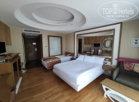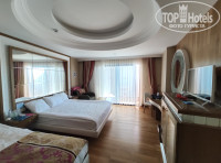 По прилету нас забрал экспресс-трансфер - минивэн на три семьи, очень долго ждали третью семью, которая так и не пришла( Отель: по приезду в отель (в районе 11 часов дня), нас попросили подождать до двух часов, поэтому мы переоделись и пошли купаться. Заселили нас в номер с видом на море, НО этот вид на море был в два маленьких окошка по бокам балкона, а в центре проходила огромная стена, но мы бронировали вообще номер land view, поэтому нас такой номер вполне устроил. В номере есть все необходимые мелочи: посуда, чайник, фен, холодильник. В ванной гель для душа, шампунь, кондиционер, шапочки, ватные палочки. Кстати, очень понравились отельные шампунь и бальзам, такое в первый раз, обычно не очень нравятся. Убирали в номере каждый день, были две кнопки в номере "Не беспокоить" и "Нужна уборка", как то нажимали "Не беспокоить", но уборщица все равно рвалась в номер убрать его. Каждый день пополняли мини-бар, в нем все бесплатно (вода, кола, минералка, пиво), меняли полотенца и постельное белье.