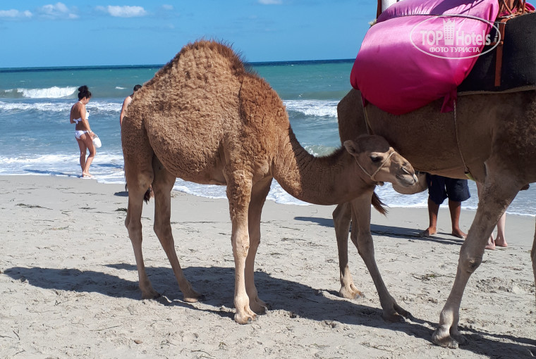 Пляж недалеко от отеля, идти буквально 5-7 минут. Пляжи в Тунисе муниципальные, но каждый отель имеет свою территорию с охраной. Территория отеля заканчивается где-то в нескольких метрах от береговой линии, по ней шастают продавцы, которые не имеют права к вам подойти, пока вы находитесь на территории пляжа отеля. Поэтому они могут остановиться напротив вас и махать вам, привлекая ваше внимание и ожидая, что вы сами к ним подойдете. Один раз брали у одного из торгашей бананы, но это было в первый и последний раз, отдать 2 евро за 2 банана – это грабеж. Так же по береговой линии местные водят верблюдов и лошадей. Покататься на них довольно дорого. Я слышала, что где-то 10 долларов за пару минут катания на верблюде. Почему-то в Тунисе не принято вешать под хвосты животным мешочки и все их животное «добро» вываливается прямо на пляж, так что нужно всегда смотреть под ноги) Море шикарное, очень теплое, но водоросли портят весь кайф от отдыха. Когда мы только прилетели, несколько первых дней было чисто. Но потом грянул шторм и после него весь пляж был устелен водорослями, которые особо никто не убирал. Их просто сгребли в кучу и бросили на пляже. Иногда трактор, просто, сгребал их обратно в море - логика здесь мне абсолютно не понятна). Море было черное от этих водорослей, заходя в него, нужно было несколько метров продираться через это болото на более-менее чистую воду. К концу отпуска на пляже нестерпимо воняло тухлыми яйцами, даже мой муж, который запахи не чувствует от слова совсем, учуял это амбре. После обеда мы шли на бассейн где играли в водное поло и прочие игры с мячом.