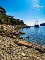 ПЛЯЖ: у данного отеля 2 пляжа: в мин 10 от отеля находиться галечный пляж, не сооветую до него ехать на трансфере быстрее и спокойнее дойти до него пешком, на пляже хорошо работает интернет, всегда есть пару свободных лежаков, вход в море очень комфортный, нет резкого перехода, но если у вас низкий болевой порог лучше приобрести каралки что бы не портить себе впечатление от моря, оно очень чистое.