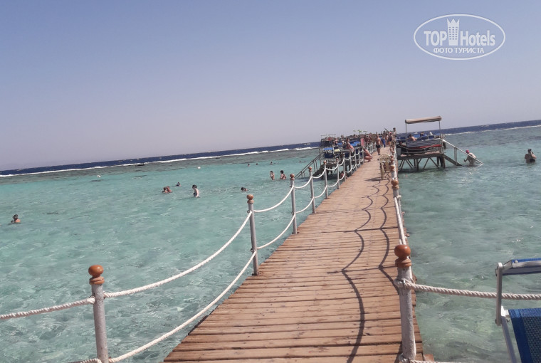 Пляж. Много удобных лежаков и кожаных двуспальных диванов, с подушками(как и у всех бассейнов). С утра до отлива можно купаться с берега. Мы предпочитали купание с понтона. Он 700м, но есть 4 зоны отдыха со спуском в море, 3 на мелкоте, 1 на глубине, самый большой. Везде лежаки, кресла, на большом диваны, места есть всегда. Люди снуют туда-сюда. Из 7 дней 2 раза вешали красный флаг, и то не надолго. В трёх мелких зонах при этом все купаются, закрыт только спуск на глубину. Там спасатель, когда волны помогает подняться по лестнице. Все плавают с масками, риф красивый, рыбок много. Море тёплое. Понтон стационарный, не шатается. Идти приятно, море очень красивое, требуется на мелкоте спец обувь, купили на местном базаре, слева от выхода с отеля в 3 минутах хотьы по 2,5 дол, надо торговаться. Манго дешевле, чем на Старом рынке, большое, зелёное по 1 дол, жёлтое поменьше, это другой сорт по 2 дол. Имеет смысл сразу по приезду съездить в магазин Джорджа Клуни закупиться кораллками(по 2 дол), масками (по 10дол цельные на все лицо), магниты 7, 5 и 3 шт на 1дол. Тарелки, статуэтки по доступной цене. Нашли в интернете инфо, позвонили, вызвали такси на нужное время, бесплатно отвезли. Но очередь там, конечно, не детская. Мы ради магнитов не стали стоять. Вообще они отвозят бесплатно и обратно но тоже очередь, мы поймали маршрутку, за 1 дол(они недалеко от отеля) на 3-х и уехали сами. В Старый город тоже на маршрутке, платили 5дол, это далеко, км 30-40, но может, можно и дешевле сторговаться.