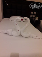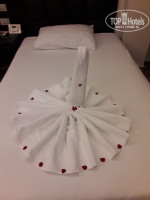 Чуть не забыла про уборку в номере, у нас очень был приятный парень, старался, за что получал свой ван доллар, крутил из полотенец фигурки.