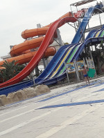 Хотела сказать пару слов об аквапарке, 7 горок. 6 по одной лестнице и одна с подъёмом на широкую горку, для съезда на 3-х местной надувной шайбе, она тяжёлая и объёмная, носили только мужчины, но за ними, а их всего 3 или 4, всегда очередь. Написано, что детей пускают от 140см ростом, но катались и 6-летние, горки не опасные, кто не боялся. Везде чисто, тоже есть бар и лежаки и диваны по навесом. Нам очень понравилось.