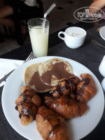 Завтраки. Выбирай, что хочешь во всех ресторанах, они расположены один за другим, мы заходили в первый и обходили все, клали на тарелки, что нам нравится, а садились кушать в последнем, самом тихом, Азиатском. Только на ужине мы усаживались на улице перед самым большим рестораном, т.к. было уже не так душно. Еда на завтрак всегда повторялась, потом мы сделали вывод, что достаточно однообразное меню именно по утрам. В каждом ресторане делают какой вам нужен омлет или яичницу, всегда пекутся круассаны, пончики и блины, к ним разное варенье, джем, мёд, шоколад и карамель. Несколько видов колбас и сыров, фрукты, картофельное пюре, в Азиатском есть Фалафель, зеленоватые мясные шарики с печеными перцем и баклажанами. Очень вкусная мягкая брынза. Несколько видов соков, 7ап, пепси, фанта настоящие. Кофе вкусный, настоящий, ну и каждое утро дынный фреш!
