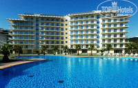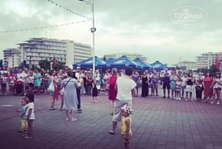 Сам отель состоит из 12 корпусов, рассчитан на огромное количество гостей. В отеле 5 бассейнов, что приятно радует, когда море штормит. Также есть выбор по ресторанам, территория отеля очень красивая: много мостиков, детских площадок, прудов с уточками)) и деревня Карасёво, где можно поучаствовать в турнире по рыбной ловле, есть круглосуточные магазины и аптека. С балкона открывается невероятно красивый вид на олимпийский парк, ведь он совсем рядышком! Так же рядом есть ЖД станция, и парк аттракционов, но вот до моря далековато, хотя есть трансфер, пешочком где-то метров 800-900, такая своеобразная разминочка для ног)) Номера чистые, убираются каждый день, горничные большие молодцы! Очень приятное впечатление от отеля)