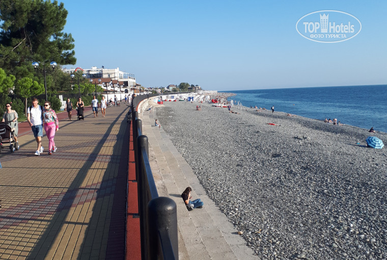Летели от Библио Глобус.,была задержка рейса ...в отеле были часа в 2 ночи уже 14 числа. Удивило,что весь автобус высадился в этом отеле .Расселили быстро ,номер дали ,как и просили., с видом на горы 6 этаж. (8 корпус). Территория большая ,красивая. Брали только завтраки и ужины. Питание это отдельная тема....Лучше брать без питания. Позавтракать можно в номере ( есть холодильник и чайник).До моря от КПП путь займет 10-12 минут., лежаки 200р. ,зонт 100р.,на двоих 500 рублей. Пляж очень каменистый. Брали экскурсии от Библио Глобус Обзорная в Сочи и на Роза Хутор. Все очень понравилось! Экскурсоводы Супер!!!! (Михаил и Татьяна).С погодой повезло , днем было до 25 градусов.,море было еще теплое 20-21 ,но вода в бассейне градусов 18.