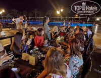 23 октября у нас был последний тренировочный день и мы решили устроить совместный ужин. Нам нужен был стол на 24 человека. Аля карт нам отказали бронировать, тогда мы попросили в главном ресторане на 19:30 общий стол. Приходим 23 октября к 19:30 а для нас стола нет. Мы с помощью работника ресторана по имени Ахмет, соединили столы, он сказал что нам сейчас поднесут 24 бокала красного вина. И мы ушли за едой. Приходим а вина нет. Идём сами на бар за ним. А там недовольная девушка как раз заполняла наши бокалы. В общем она была очень недовольна(хамила на турецком, что нас так много, но она не знала что мы все понимаем).