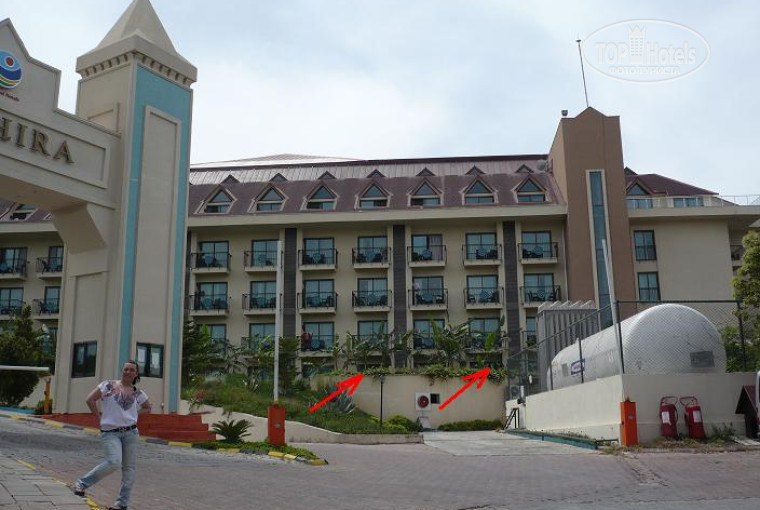 Расселяли всех русских на первый этаж с видом «на озеро». На самом деле с первого этажа никакого озера не видно, а видно только какую-то шумную установку. Вровень с балконом идёт газон, по которому ходят уборщики и на который сверху гадят. После долгих упрашиваний только на следующий день нас переселили на 4 этаж с видом на море за доплату 13$ (10 евро) за сутки, хотя отель был заселен только на половину.