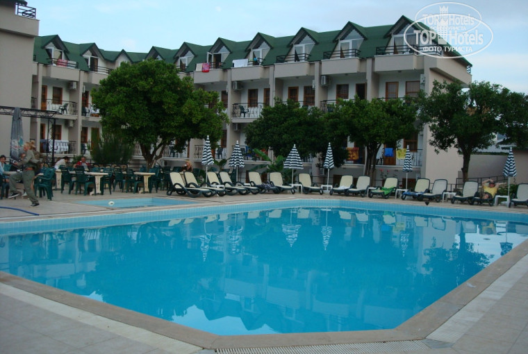 Отель хороший, маленький и уютный. Напитки местного производства наливали в сильно разбавленном виде, а национальной водки "раке" вообще нет. Очень жаль! Отель расположен почти в центре Кемера и до пляжа близко. Но там галька и ходить по ней не очень то удобно.