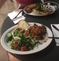 Завтрак, ужин (при нас был шведский стол) : разнообразия особого не было, на завтрак всегда вареные яйца, хлопья, сыр, бекон, колбаса, овощи, чашечка кофе или сок на выбор, хотя мы брали и кофе и сок (типа юппи) одновременно, ничего не говорили. На ужин всегда картошка фри и рис, также мясо, кольца кальмаров иногда, курочка в разных вариациях. На ужин напитков не предполагалось. Вообще все достаточно вкусно и наесться взрослым точно можно. Но опять же :тарелки были плохо промыты, со сколами, прежде, чем что - то в них накладывать, приходилось протирать салфетками.
