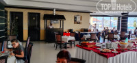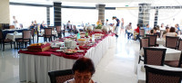 Питание в отеле не отличается большим разнообразием, но на обед и ужин всегда были курица, говядина, рыба в разных вариантах, суп-пюре. Гарниры картофельное пюре (в обед), рис, макароны. На завтрак были свежие огурцы и помидоры, в обед только в виде разных салатов. На завтрак очень вкусные круассаны, простые и в виде бутерброда с мягким сыром и долькой помидора, половинки грецких орехов, миндаль, изюм, кусочки разного сыра, говяжий бекон на хлебе из гриля, чай, кофе, арабский карак с молоком, (очень вкусный), сок манго и апельсиновый, вода, молоко в кувшине. Яйца вкрутую, глазунья и омлет, овсянка для детей совсем без соли и сахара, клади, что нужно: варенье, мед и т.д. На обед и ужин много острых блюд, мужу нравилось, а я это есть не могу. Помогало спиртное, хорошего качества. На обед и ужин заказывали по бокалу белого или красного вина. На веранде у моря разные коктейли, немецкое пиво, крепкие напитки с 11-00 до 24-00. Расписываешься в пустом чеке. Рядом с отелем дискотека для местных и для все включено с 22-30 до 3-00. Бесплатный биллиард. Ходили наши знакомые, мы в это время всегда спим.
