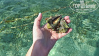 Здесь пирс, обычно этот пункт все относят к минусам,но рядом 2 Rixos и там никто не возмущается!!!Море очень красивое, рыбок много и кораллов , и морских ежей, и ракушек, и моллюсков. Если нырять с самого края пирса,то можно увидеть все многообразие красного моря.Прилетели с ребенком и он нырял и плавал без вопросов.