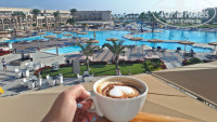 Излюбленная тема наших туристов.Так вот мое личное мнение по этому поводу.Мы путешествуем регулярно, объездили много стран и работаем в Европе,поэтому сравнить есть с чем.Египет очень сильно шагнул вперед в плане кухни и ее корректировки под вкусы славян и европейцев.Вот молодцы они.Всего 5 ресторанов плюс 1 Аля-карт( бронь 20$) и кафе street food на пляже.Вопросов с едой у нас не было, общались с немецкими туристами им тоже все нравилось.Завтраки: фрукты, выпечка, яйца во всех вариациях, овощи, напитки и свежевыжатый сок дыни, картофель, сосиски, фасоль в томатном соусе, каши, мюсли и тд.Обед : мясо, супы( достойного качества, обычно возле них всегда есть народ), гарниры, гриль, пицца, овощи, напитки плюс алкоголь и тд.Пообедать можно в 3 ресторанах в гл корпусе и на пляже в кафе. Пицца вкусная. Ужины:полное разнообразие мяса, гриля, рыбы и всего остального. На ужин работают все 5 ресторанов,особенно многим нравятся итальянский Saprano и рыбный Culina,но на мой взгляд они все хорошие, здесь дело вкуса. По поводу того,что нечего покушать......покушать можно всегда что-то найти и постоянно на зале стоят повара и спрашиваю, все ли нравится.Для детей есть диетический стол и блендеры.Алкоголь хорошего качества.Из баров понравился Sport bar и кофейня Colambus.Что отличает этот отель от других? Это то,что везде носятся официанты:на пляже, возле бассейнов, в аквапарке, в ресторанах и барах. Всегда можно попросить( но обычно до этого дело не доходит...они сами спрашивают,что пренести попить или выпить)!