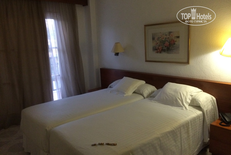 Доброго всем времени суток. Хочу поделиться с вами своими впечатлениями об этом отеле, на конец то дошли руки написать. Я надеюсь мой отзыв будет кому то очень полезен. Прилетели мы на Майорку около 18-00, до отеля где то около часа езды. Наш отель был предпоследним. Нас проводили до ресепшн. На решепшн нас встретил улыбчивый мужчина средних лет, который на ломаном английском в смеси с испанским, нас оформил. Вообще на ресепшн есть девушки которые понимают и разговаривают по русски. У нас номер был 159. В номере была большая 2- спальня кровать , телевизор, кондиционер. У нас был вид на море. В ванной комнате : унитаз, бедэ, умывальник, фен,2 кусочка мыла, на ванной гель для душа и волос. Низкая ванна,со стеклянной шторкой,это чтоб вода не брызгалась ,удобно. Набор полотенец. Кондиционер и свет работали от ключа-карты.
