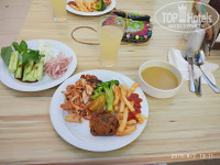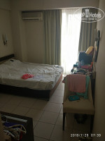 Начну по порядку: заселили через час, мы приехали в отель в 11 утра, заполнили документы ,купили вай-фай(1 доллар в сутки,купили сразу на 13 дней,подключают за эти деньги все устройства в номере,у меня и у дочи по телефону было). В 12 нас заселили в корпус "А", номер чистый, скромный, телевизор старый,один канал на русском(но кому нужен ящик на море???) включали от силы два раза музыкальный канал для фона!фен рабочий, холодильник- не ахти морозит,но рабочий. В номере на второй неделе подтекать унитаз стал, некогда было сообщить об этом на ресепшн, так в итоге уборщица сама это заметила и сообщила администрации-нас хотели переселить,но так как нам на следующий день уже надо было уезжать-отказались. Ремонтировать они его точно собирались, и дождались нашего отъезда.