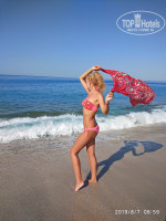 Мы приезжали за морем и активным отдыхом ,поэтому наше пребывание в отеле сводилось к ночевке и кормежке,максимум проводили на море,в гуляниях по городу и на экскурсиях. Безумно понравилось,что пляж через дорогу-ровно пять минут и ты на пляже, напротив отеля волнорез, мы его активно юзали, оставляли там сумки и полотенца и шли купаться, зонты и лежаки не покупали, очень дорого,а главное-они нам были не нужны, мы в море почти все время, очень нравилось лежать на пляже рядом с морем,делали подушку из песка и гальки и вдыхали запах йода.