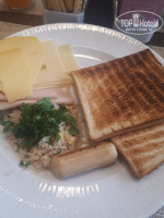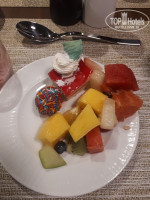 На завтрак :каша, омлет,сосиски, выпечка, фрукты (арбуз,виноград,клубника, ананас,папайа,яблоко, апельсин,грепфрукт), салаты,мясо, овощи,яйца,соки 4 вида, кофе с кофе машины, р.s Писали ,что прячут и не показывают оладьи. Они жарят все при посетителях. И предлагают всегда, правда на английском языке)) Если попросишь оладьи или яичницу, все сразу же приготовят.