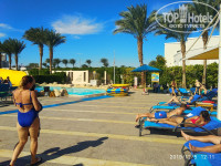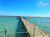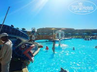 Нам откровенно не повезло. Красный флаг был с первого до последнего дня и только в вечер отъезда, в 16.30 появился зеленый, а темнеет в 17(. Мы конечно обкатали все горки аквапарка, они все интересные. особенно отдельная, где едешь на шайбе - на сильном ветру тащить резиновую шайбу на пятый этаж еще тот квест) и просерчили все бассейны. Совет - хотите с подогревом и поплавать - это не тот бассейн в котором проводят анимацию, там метр тридцать всего, а вот во дворе 7-го корпуса есть басссейн на метр шестьдесят с подогревом. В аквапарке всегда теплая вода но сидеть там долго не дают, мест на лежаках хватит, но интереснее в водичке, а не на лежаке. Пляж с точки зрения разместиться, что называется на любой вкус, и лежаки и диваны, а с берега могут забегать даже малявки. Как писал из за сильного ветра глубины нам не покорились, потому ходили по пирсу плескаться в лагуну. В отличие от пирсов отелей рядом - есть боковые спуски и лежаки, в лагуне максимум по грудь конечно, но немного рыбок и живых кораллов можно увидеть, представляю какой должен быть классный главный риф. За счет хорошего дна и глубины лагуны с учетом ветра отель - идеальное мессто для вейка и виндсерфинга - оборудование для этого есть и народ катается. Кто умеет конечно). Пройти 600 метров по пирсу для нас ниразу не стало напрягом даже при сильном ветре, пирс кстати перестраивают и меняют доски настила. Солнце несмотря на ветер не обожгло, кремом при этом не пользовались защитным. Вода была в пределах 17-21 градус, очень чистая. Можно при желании коралки не одевать, ежей видно с пирса, и кучкуются они возле крупных камней, достаточно далеко от места плескания, которое заботливо огорожено веревкой с пенопластовыми буями.
