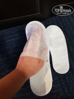 Номер: итак, сразу же после открытия двери чувствуешь очень резкий затхлый запах, словно в маленьком закрытом помещении оставили мокрый ковер на недельку. Еще сильнее этот запах чувствовался в туалете, возможно, он шел от канализации. Или же это смешались запах водопровода с запахом влажного ковролина, так и не смог понять. Термометр в номере показывал +30. Естественно, первое, что я сделал - это открыл нараспашку окна. Причем окна оказались очень грязными, правда снаружи, но все же неприятно. Какой-либо освежитель воздуха отсутствовал, так что избавиться от этого ужасного запаха можно было только проветриванием. Но стоило закрыть окна (декабрь все-таки), запах снова наполнял помещение и температура снова стремилась к +30. Батареи можно только перекрыть (отключить), что резко понижает температуру ниже комфортной. Окна не открываются в режим микро-проветривания. В номере есть кондиционер, работающий в режиме "авто", пульта от него нет. Если отбросить все эти неприятные моменты, то сам интерьер номера довольно приятный, есть все необходимое (ТВ, холодильник, бытовые мелочи: щетки, тапки, ложка для обуви, сейф, пара стаканов, фен, душевые принадлежности). Кстати, тапки ужасные, такие выдают в поездах, но не должны они быть в отелях с 4 звездами. Из мебели было даже два кресла, небольшой диван и журнальный столик, помимо стандартного набора из шкафа, письменного стола и кровати с тумбами. Кровать очень большая, можно и втроем уместиться, составлена из двух кроватей, но сверху один общий матрас и перехода между кроватями не чувствуется. Также была душевая кабина, хотя на фотографиях на сайте - номера с ваннами.