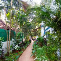 У отеля отличное расположение (скорее Бага, чем Калангут): всего минут 10-12 спокойным шагом до пляжа, отель находится в 2-х минутах от главной дороги, на которой огромное количество кафе, магазинов и т.п.