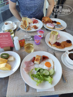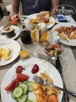 У нас были включены завтраки и ужины, как и везде, на ужин любые напитки платно. Очень понравились завтраки, действительно, огромный выбор блюд, яичница, различные фрукты(особенно ананасы и киви вкусные), фреши из свежих фруктов, шампанское в любом количестве, оладьи, джемы и много-много всего. Недостатка в питании не ощущали. Ужины тоже неплохие, но понравились чуть меньше. Апельсиновый сок по вкусу пакетированный, совсем не понравился, лучше берите или воду, или шампанское/вино, и то, и то, довольно вкусное. Довольно однообразно на ужин, в том смысле, что сильных отличий изо дня в день мы не видели, главное отличие в морепродуктах - в один день были креветки, в другой паэлья, в третий - мидии и т.д. Придраться особо не к чему, мы голодными не оставались и наедались:) Оценка питанию - 5-.