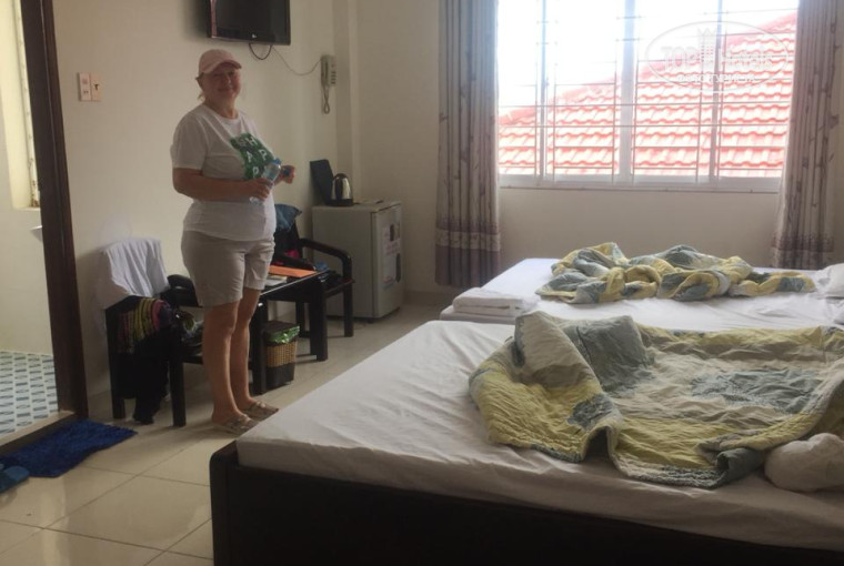 Поездку планировала на середину декабря и отель выбрала другой. Но предложили горящий тур в ноябре в этот отель и я не раздумывая полетела. Отель находится рядом с морем , через дорогу. До городского пляжа 2-3 минуты медленным шагом . Место расположения отеля мне очень понравилось , обмен денег 5 метров от отеля ювелирный магазин . Кафе , массаж , рынок , остановка автобуса до центра города , русское информационное бюро все в шаговой доступности . 80% гостей русские , остальные китайцы. Сам отель очень скромный , чистый , сотрудники отеля замечательные . Номер большой , светлый , две огромные кровати , стол , два кресла и шкаф. Вся мебель старая , шкафом мы не пользовались он ужасно старый , гнилой и поеденный какими то насекомыми. Вещи хранили в чемодане и на кресле , благо их во Вьетнаме практически не надо . Брала кучу нарядов , использовала купальник , шорты и три майки . В номере большое окно , в туалете два . Вид был на храм и на море . Паста , зубные щетки , шампунь , мыло , туалетная бумага пополнялись каждый день , полотенца меняли ежедневно , полотенца и постельное белье чистые , белые что очень порадовало . живности в номере не было , хотя постоянно окно было открыто , очень нравился шум моря . Для гостей как мы , уезжали каждый день в шесть утра а возвращались ближе к девяти вечера отель отличный . Поспали , вымылись , переоделись и по экскурсиям . Если конечно планировать спокойный отдых с обедом и ужином в отеле , то я бы не остановилась в нем , досуга нет ни какого вообще , нет даже толком столовой , три стола в каком то зале где хранится всякий старый инвентарь. А сам Вьетнам замечательный , искренне советую всем побывать в этой потрясающей стране !