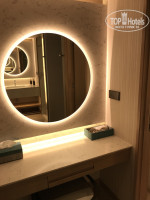 Номер: большой, просторный, с большим панорамным окном и большой кроватью. Удивила самая современная система выключателей и всей системы подсветки в целом: зеркала, шкафы, сейф, индивидуальная подсветка для чтения (в потолке), ночная подсветка (внизу стен). Выключатели кнопочные (одним нажатием), USB-выход во всех розетках, для зарядки гаджетов и всего, что заряжается через USB. В номере набор для приготовления кофе и чая, который пополнялся каждый день, в приличных количествах. Вода каждый день в стеклянной бутылке, которая должна остаться в номере ( меняют воду согласно пустой таре). Приехав было в номере 3 шт. по 0,5 л, но в дальнейшем ставили 4 штуки. В шкафу : халаты, тапочки, утюг, зонты. Туалет и душевая раздельные. В душевой, впервые, увидели стеклянные двери, два вида душа и место для сидения. Шампунь, кондиционер, гель для душа, лосьон для тела все в больших емкостях с дозатором. Самое интересное, постельное бельё меняли каждый день!!! Полотенца большие, средние и маленькие - всегда белоснежные. Балкон не большой, но это не столь важно, главное, 2 кресла +столик и сушилка на стене. Спустя неделю проживания, увидели в номере тарелку фруктов, комплимент отеля, что было очень приятно. При заезде дали карточку на одноразовое получение бесплатного минибара: 2 банки пива и 4 банки газированных напитков б/а ( получение в минимаркете отеля).