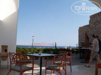 Территория ухоженная, все красиво, с открытой веранды отличный вид на море.