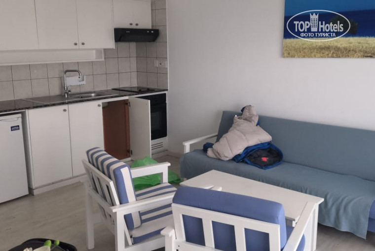 Так случилось, что часть отпуска мужа попала на середину декабря. Поразмыслив как его провести и просмотрев ряд стран, где можно понежится на солнышке наткнулись на интересное предложение от туроператора Библиоглобус на апартотель LIQUID 3* Кипр, Айя-Напа. И так как мы не были на Кипре, решение было принято быстро. Перелет авиакомпанией Россия, без нареканий, в самолёте посмотрели кино, съели предложенный сэндвич. Кипр нас встретил солнечной погодой, хотя накануне у них три дня шли очень сильные ливни. Отель LIQUID 3* находится около известной «Улицы баров», практически в центре тусовочной жизни. Очень приятный, не большой и уютный отель. Персонал на ресепшен приветливый, как и все киприоты. В номере есть все необходимое для самостоятельного приготовления пищи (кастрюли, сковорода, миски, ложки, вилки, нож, бокалы, чашки, стаканы, штопор) средство для мытья посуды и губку мы привезли с собой. Убирались каждый день, полотенца меняли по необходимости. В номере два кондиционера, в гостиной за 6 евро в день, в спальне бесплатно, Wi-fi бесплатный, ловит отлично. Мы брали только завтраки, которые накрывали в LIQUID cafe рядом с отелем, это кафе пользуется популярностью у местного населения. Завтрак был на выбор либо омлет с тостом, либо яичница с беконом, колбаской , фасолью и жаренными шампиньонами, сок, тосты с джемом и на выбор кофе (латте, капучино, черный) или чай. Все очень вкусно и достойно.