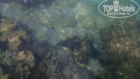 Главный плюс этого отеля- свой прекрасный пляж с черепахами и рыбами. Их там много. Гости размещаются в отдельных одноэтажных шале с верандами. У всех вид на море. Оно рядом. Есть подогреваемый бассейн. Вода 31 гр. Море сейчас 25 гр. Здесь Оманский залив, вода теплее, чем в персидском заливе на 2-3 гр. В каждом номере есть чайник и каждый день приносят тарелку с пакетиками чая, кофе, сахара и сливки. Полотенца меняют каждый день. Шампунь, гель для душа,расчески и пилочки для ногтей по мере надобности. Тапочки есть. Халаты по запросу. Надо брать ужин обязательно, рядом с отелем нет ни одного магазина или кафе. Завтраки обычные. йогурта нет, к сожалению. Вместо него что-то странное молочное.Нет никаких булочек или пирожных. фрукты порезаны кусочками- арбузы, дыни, яблоки, апельсины. На ужин рыба и мясо , плов, картошка, салаты.В отличие от многих отелей здесь при HB вечером включены напитки,кофе и чай. Пляж очень хороший. Лежаков много. Занимать не надо. Полотенца пляжные дают. Также бесплатно напрокат дают ласты, маски и тапочки-кораллки. Черепахи чаще тусуются слева. Хороший заход просто поплавать правее. Совсем справа красивые кораллы. там полно разных цветных рыб. Черепахи туда тоже заплывают. Напротив отеля в море примерно в километре виден Черепаший остров. С собой надо брать подводный фотик. Мы наделали видео с черепахами. Релакс полный. Рекомендую.