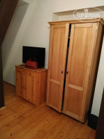 Мы жили на 5 этаже. Мебель в номере в той же стилистике, паркет. В ванне обычная душевая кабина, раковина, унитаз, фен.