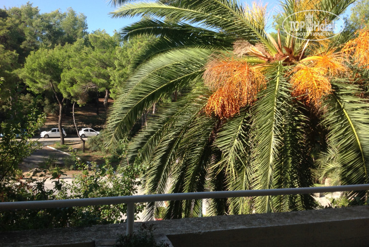 Территория отеля зелёная, есть пальмочки.