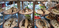 Нет слов, все на любой вкус,- очень впечатлил вкуснейший фалафель, разнообразные йогурты, фрукты,миллион видов выпечки, мясо - курица, телятина-говядина, утки, перепелки,кофта, котлетки, отбивные, рыбы - море разной, крабы, креветки.Про пироженки и тортики - писать можно просто бесконечно...