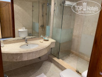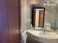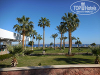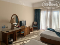 Номера отеля расположены на первой и второй линии, хотя разделение весьма условное, т.к. отель разделён дорогой с очень маленьким трафиком, но в тоже время есть и подземный переход (которым по сути нет смысла пользоваться). На самом деле, путь от моря до столовой и до номеров 2-й линии займет не более 5-7 минут прогулочным шагом. Есть небольшой подъем, если идти по прямым проездам слева или справа от отеля, если идти через отель то подъем сглажен пологими дорожками, с которых открываются замечательные виды на море и остров Тиран. В любом случае, усилия чтобы подняться существенно меньше, чем, например, в метро. Действующий ресепшен у дороги, между первой и второй линией, он компактный и уютный, в нем есть Wi-Fi и бар, при текущей небольшой загрузке отеля, проблем присеть там нет. Есть второй большой ресепшен на второй линии, там проходит вечерняя анимация и работает бар, там много свободного места, достаточное количество диванчиков и кресел.