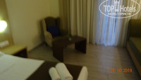 Номер был нормальной площади, кровать, кушетка, кресло со столиком, ТВ (что отсутствовало в предыдущем отеле),холодильник, в сан.узле и ванна, и душевая кабина. Полный комплект, короче.