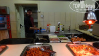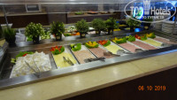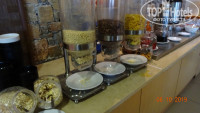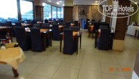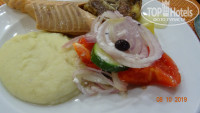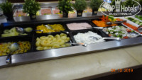 При входе в зал тебя встречают официанты в белых рубашках и ведут за столики под белы рученьки.Особенно один, вроде старший по залу, обнимал каждого, ну просто, как родного, мы первый раз просто обалдели, думали перепутал нас с кем-то. После 2-3 раза он уже знал наши предпочтения в напитках и тащил бутылку без нашего заказа... Столы накрыты белыми скатертями, после каждого приема, официанты меняют все приборы за столом полностью, даже те, которыми никто не пользовался. С едой тоже все в порядке: разносолов столько, что всего не перепробовать: мясо, рыба, гарниры, салаты, закуски, на завтраки обязательно пекут блины или оладьи, не говоря уже об обязательной глазунье, фруктах и т.д. По воскресеньям на завтрак - шампанское.