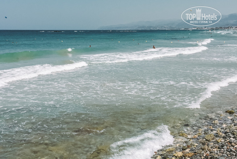 Отдыхали вдвоем в конце июля в данном отеле. Вылет был ночной. Прилетели в 6 утра. После получения багажа нас встретили сотрудники Музенидиса. Проводили до автобуса. Трансферный гид был приятный хипстер:) Во время поездки рассказывал о Греции, но есть подозрение, что весь текст читал с листа. И большую часть рассказывал о греческой мифологии. Ни слова не было сказано о тонкостях пребывания на Крите, например, как добраться до столицы или принято ли оставлять чаевые в ресторанных. В отель привезли к 8, но завтрак включён только со следующего дня. Заселили сразу на втором этаже с боковым видом на море. Хотя оплачивали номер с видом на сад. Никаких доплат не потребовалось. Вечером была персональная встреча с гидом Музенидса, на которой нам предлагали экскурсии. На этом всё. Никакой полезной информации мы не услышали. Все пришлось узнавать самим. Чтобы добраться до Херсонисоса или Ираклиона идите на остановку 26 слева от отеля, минут 5 ходьбы. Автобус со светящимся табло Heraklion. Его надо тормозить, иначе просто проедет мимо!! Билет до Херсонисоса 1,80€, до Ираклион bus station (конечная) 4,00€. Ехать примерно час. От автобусной остановки минут 10 пешком - и вы в центре. Но нас никто не предупредил, что в воскресенье -выходной, ничего не работает . Все магазины, торговые центры и большинство кафе и ресторанов закрыты. Улицы пустые. Лучше всего шопиться на центральных улицах (есть много известных брендов типа Zara, H&M, Gap и тд.)