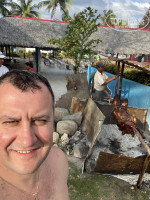Итак по отели, привезли нас 5 автобусов, заселили быстро и даже в тот номер который указывали в пожеланиях( 723, 7 корпус , 2 этаж) отличный номер( оставили на балконе прищепки и веревку, может кому пригодится) вид на океан, убирали каждый день, полотенца, постельное всегда чистое, лебледей крутили из полотенец. По еде, кормят отлично, очередей нет, воду и напитки приносят официанты, фрукты были : апельсины, ананасы, папайя , бананы, гуава. Кстати, если кому то очень хочется привезти домой фрукты сделать это очень просто: договариваетесь с официанткой и она за 10 кук продаёт вам ведро фруктов. Океан: да он очень мелкий, но тёплый и красивый, водятся морские звёзды. Пляжных полотенец полная будка, меняй хоть 2 раза в день. Гиды: очень приятные люди, встречала Екатерина, все разложила по полоскам , встречу вёл Евгений такой позитивный хохмач. Интернет: дорогой 1 кук 1 час, либо теле2 1100 безлимит на неделю, но подключать надо заранее в России . Омары: ели 2 раза на коко бич и в деревне по 10 кук порция , обязательно воспользуйтесь услугой 4х4 дневное посещение соседних отелей. Вроде все, будут вопросы пишите.